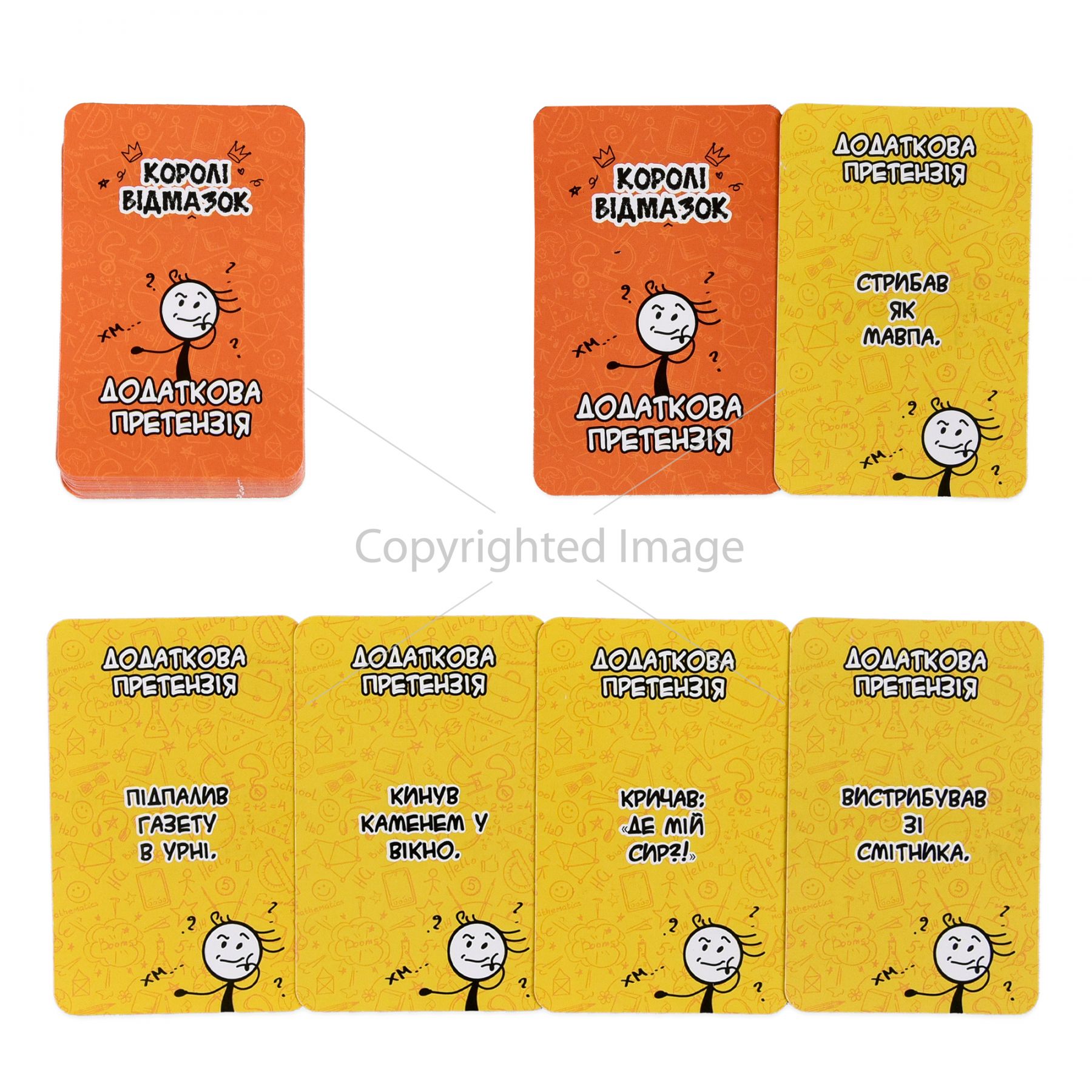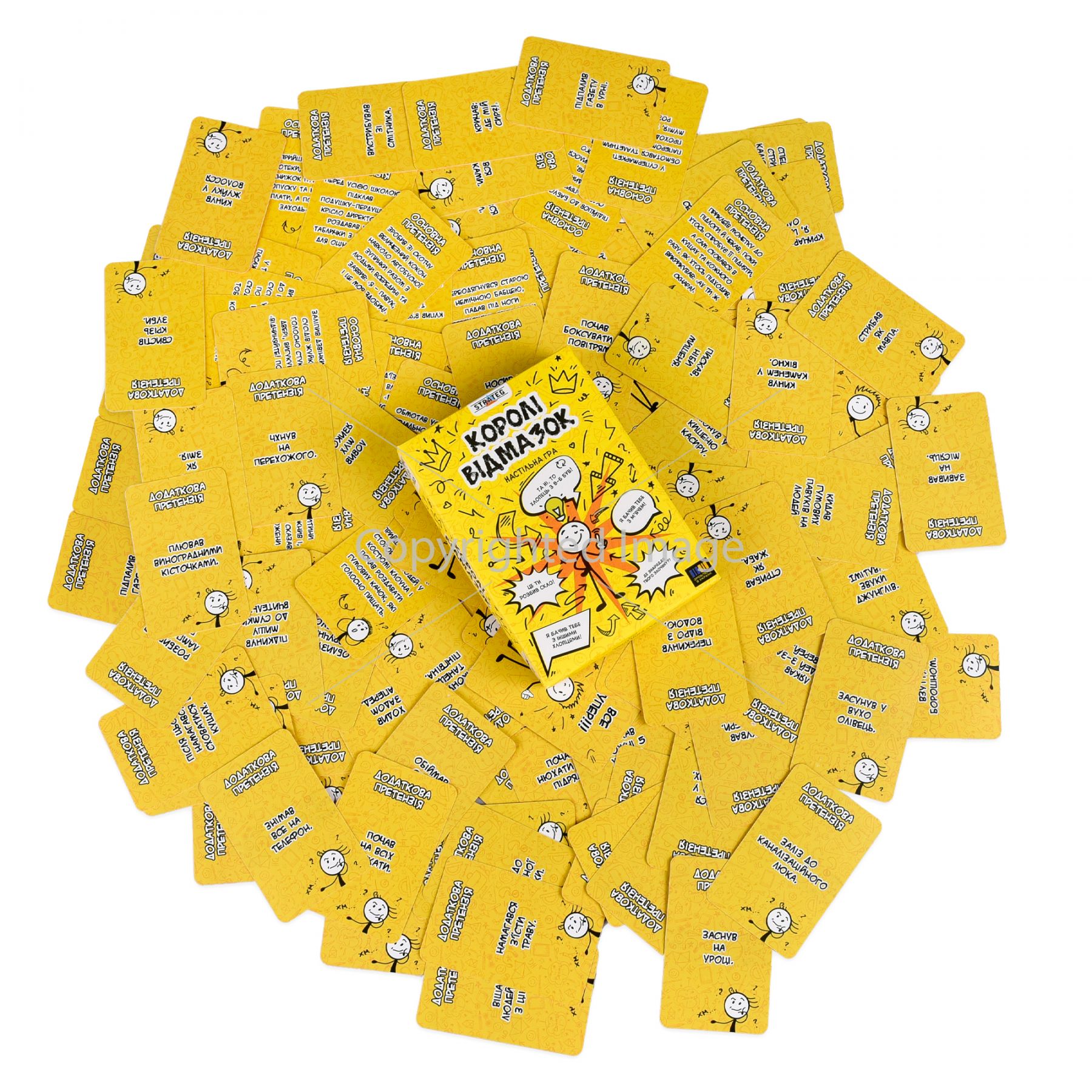 «Королі відмазок» — це настільна гра, що перетворює звичайний вечір на справжнє шоу сміху й креативу. Ти отримуєш картку з кумедною ситуацією та маєш вигадати найкращу відмазку. Чим абсурдніше й смішніше — тим веселіше всій компанії. Тут немає переможених, адже головний приз — вибуховий настрій і жарти, які ще довго згадуватимуть. Ідеально підходить для вечірок, посиденьок із друзями чи сімейних зустрічей.