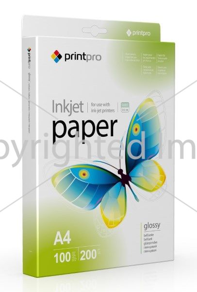 Папір А4 200г/м², PrintPro глянцевий, PG200-100 (PGE200100A4) 100арк.