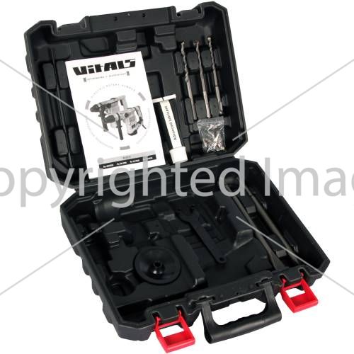 Перфоратор Vitals Master Ra 2685DS — найлегший серед аналогічних моделей, що мають вертикальне розташування електродвигуна. Відмінною особливістю перфоратора Vitals Master Ra 2685DS є невелика потужність (850 Вт) і досить висока при цьому сила удару (4,0Дж). Дана модель має три режими роботи: свердління з ударом, свердління без удару і удар без свердління.