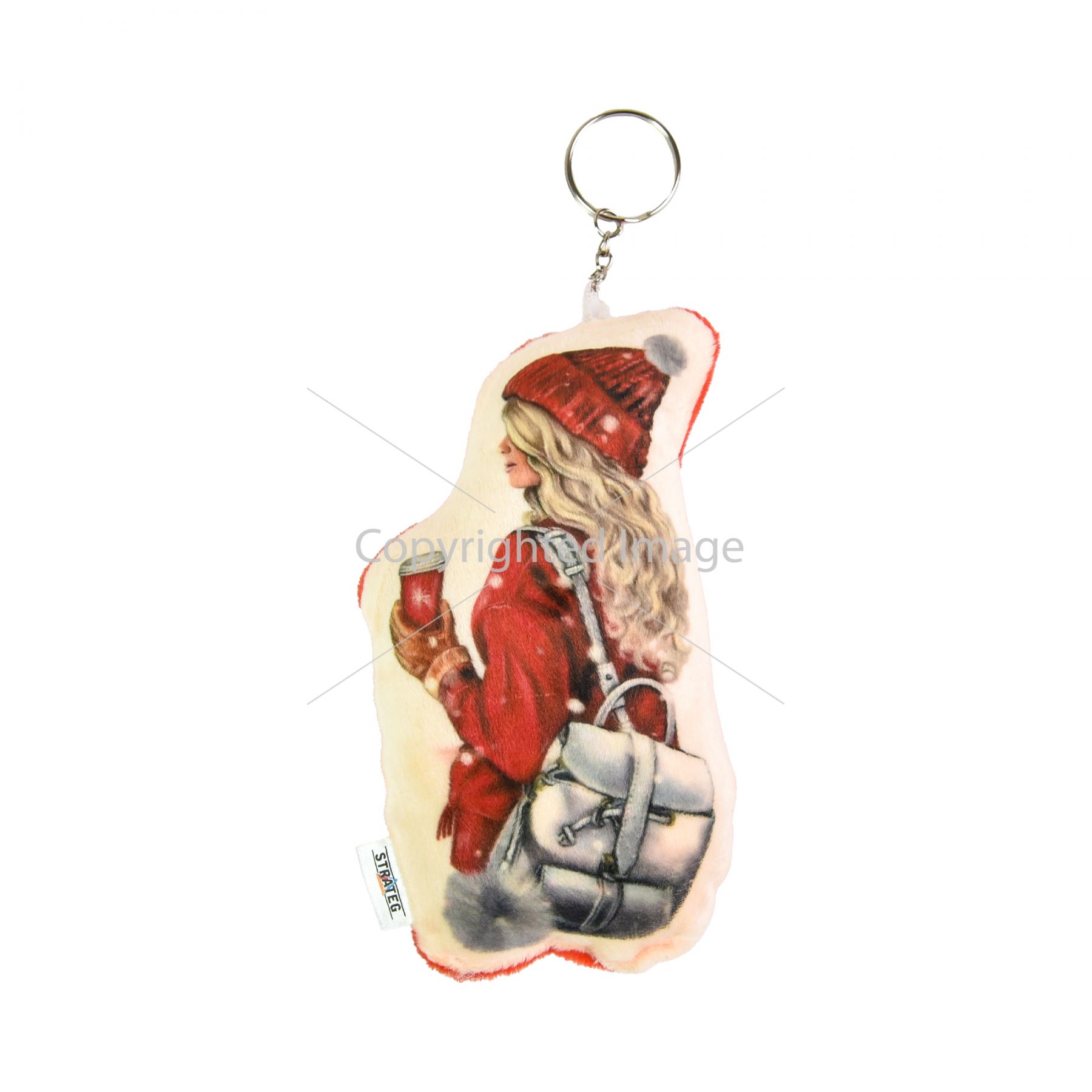 Плюшевий брелок "Мрійлива пані" – плюшевий брелок зображає стильну дівчину. Цей брелок випромінює атмосферу зимового спокою та радості, даруючи відчуття теплих зимових прогулянок і святкової метушні.