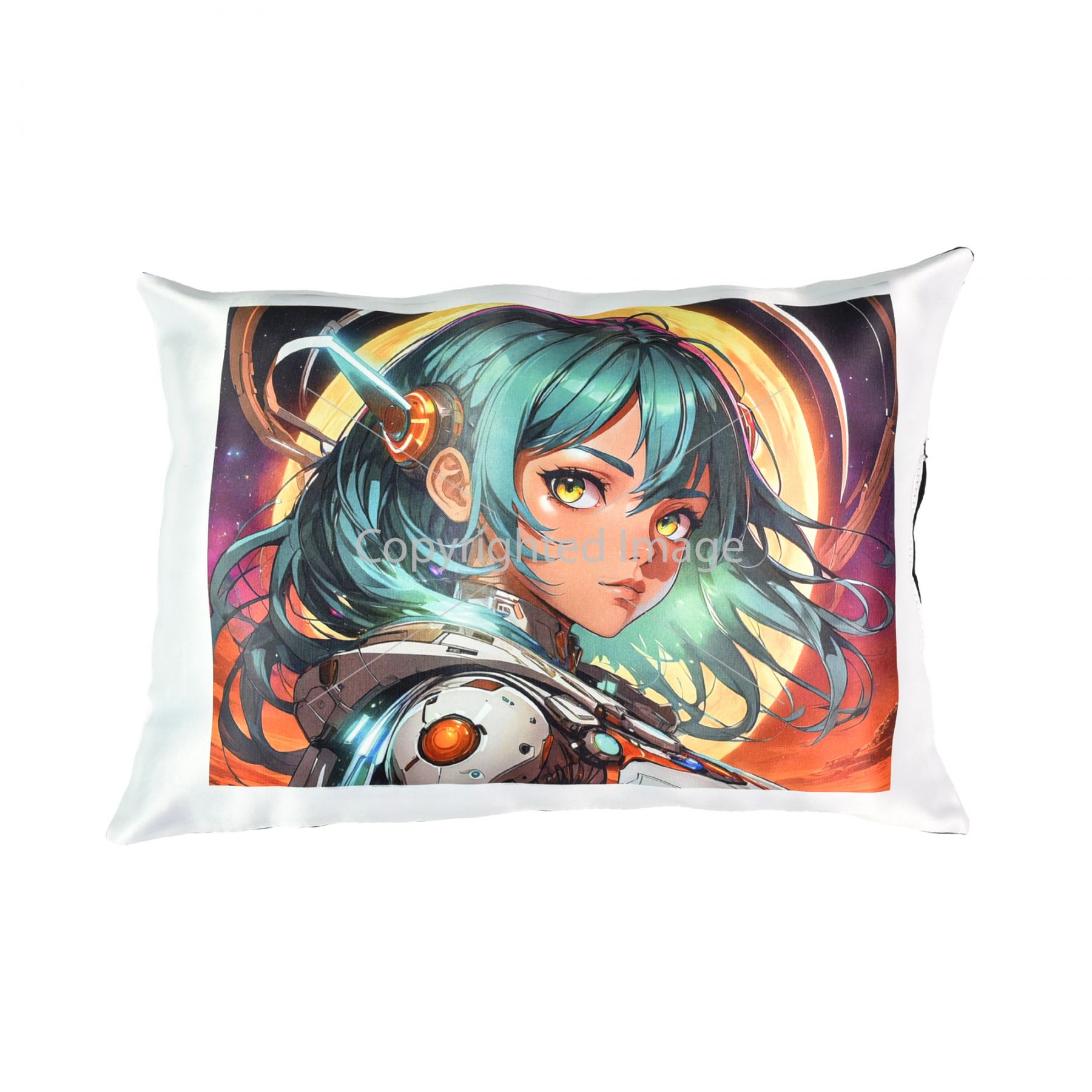 Подушка "Аніме дівчина у мистецькому світі" розмір 35*35 см (рожева) з нанесенням сублімації (60655)