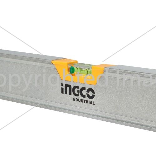Будівельний алюмінієвий рівень 150 см INGCO INDUSTRIAL оснащений трьома очками та призначений для виявлення відхилення поверхні по горизонталі й вертикалі.