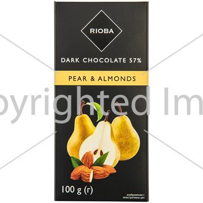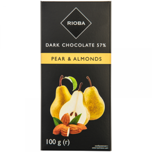 Темний шоколад з ароматом груші та мигдалем TM “Rioba”.