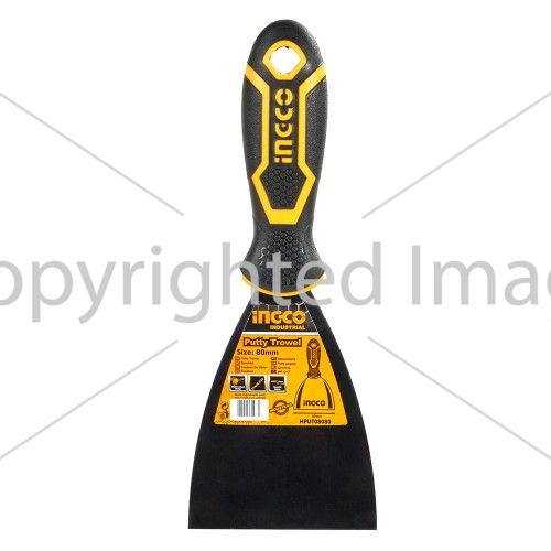 Шпатель 80 мм INGCO INDUSTRIAL використовується при малярних і оздоблювальних роботах з метою нанесення і розрівнювання будівельних і клейових складів.