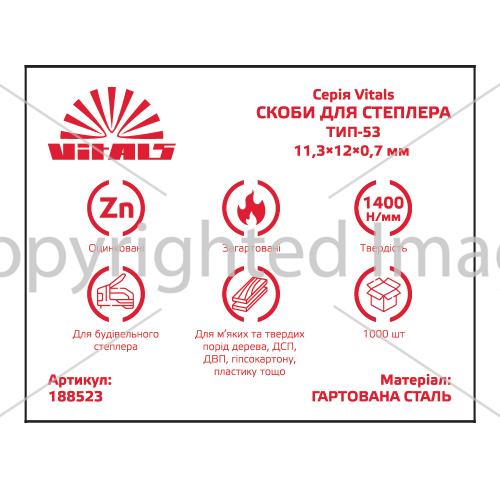 Опис скоб для степлера тип-53 12 × 0,7 мм 1000 шт. Vitals
