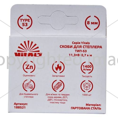Опис скоб для степлера тип-53 8 × 0,7 мм 1000 шт. Vitals