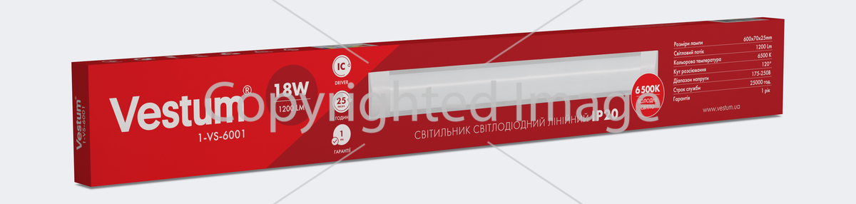 Світлодіодний лінійний світильник 1-VS-6001 потужністю 18 Вт видає 1440 Лм світла. Споживаючи в рази менше електрики, ніж лампи розжарювання або люмінесцентні лампи, світильник дає таку ж кількість світла і прослужить в кілька разів довше. Світильник відмінно підходить для установки в офісах, супермаркетах, коридорах, складах, в житлових і промислових приміщеннях. Кріплення світильника здійснюється на скоби, які входять в комплект.