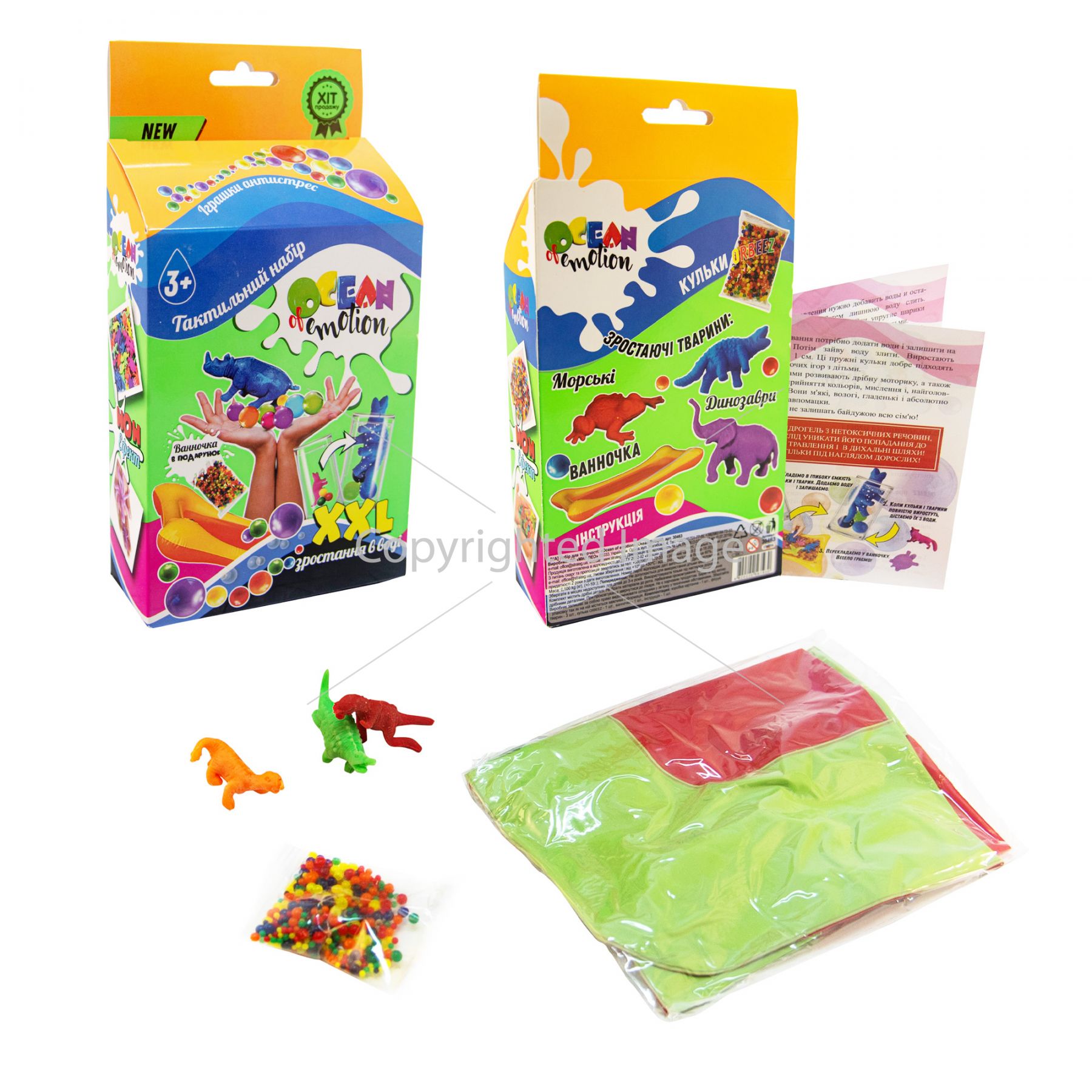 Захоплююча розвага – кульки та фігурки тварин, що ростуть, з набору «Ocean of emotion». Достатньо опустити їх у воду, щоб збільшити у багато разів! Яскраві та приємні на дотик постаті розвеселять малюка, а крім того, дадуть можливість повправлятися маленьким пальчикам. Граючи, малюк отримає безліч позитивних емоцій. Гідрогелеві кульки Orbeez безпечні для здоров'я та виготовлені з харчових матеріалів, що мають абсорбуючі властивості. Для зростання кульок та фігурок необхідна вода у достатній кількості, максимальні розміри досягаються після 4-6 годин. Зберігати готові кульки необхідно у герметичному контейнері. У комплекті є надувна ванна, в яку можна викласти кульки та фігурки для веселого проведення часу. ♦ Вік: 4+ ♦ Комплектація: фігурки тварин – 3 шт, кульки orbeez, ванна, інструкція. ♦ Вага: 190 г (+-20 г) Мова: українська.